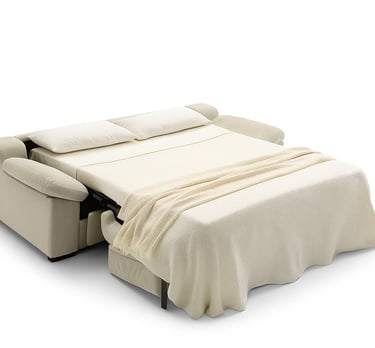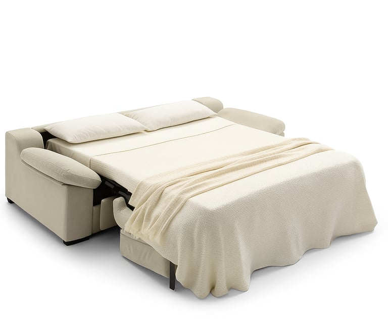 El mecanismo italiano de sofá cama permite abrir la cama con un solo movimiento, sin necesidad de quitar los cojines del asiento. Incorpora un somier metálico y un colchón oculto que se despliega fácilmente, ofreciendo una cama cómoda y estable para el uso diario o puntual. Es la opción ideal si buscas funcionalidad, rapidez y descanso de calidad.